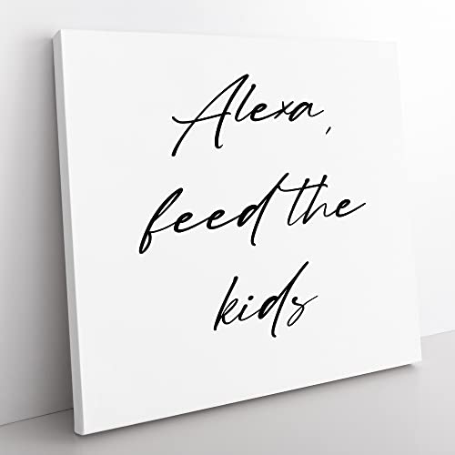 Alexa Feed the Kids Modern Typography Quote Canvas Wall Art Print Ready to Hang, Framed Picture for Living Room Bedroom Home Office Décor, 20x20 Inch (50x50 cm)