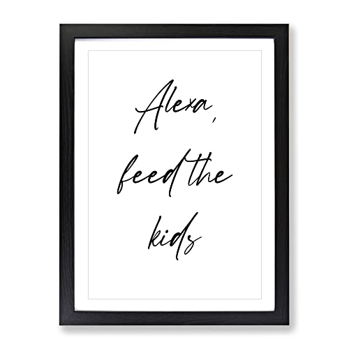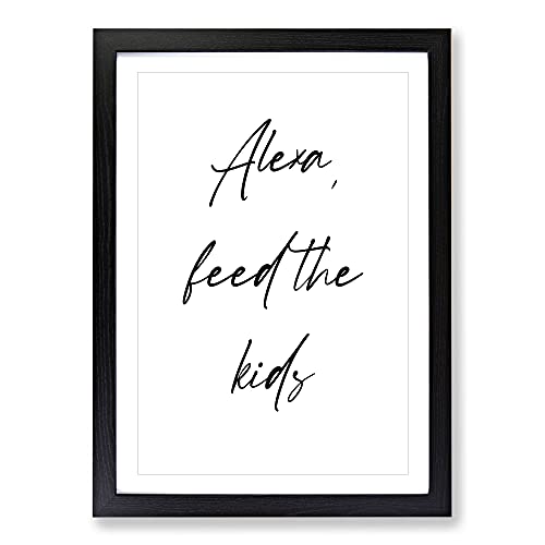 Alexa Feed The Kids Typography Quote Framed Wall Art Print, Ready to Hang Picture for Living Room Bedroom Home Office Décor, Black A4 (34 x 25 cm)