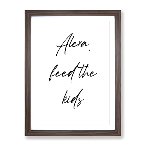 Big Box Art Alexa Feed The Kids Typography Framed Wall Art Picture Print Ready to Hang, Walnut A2 (62 x 45 cm)