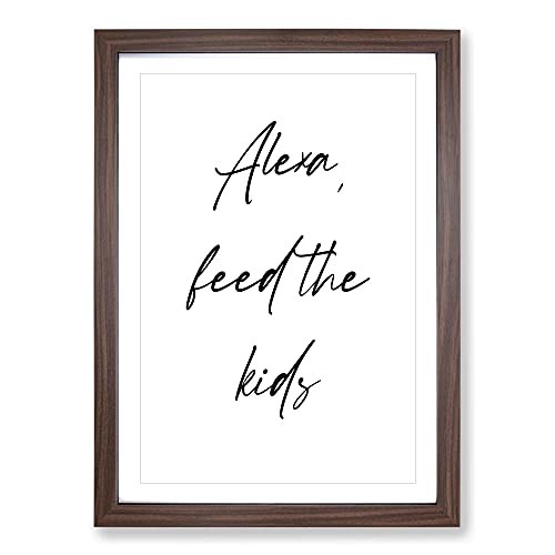 Alexa Feed The Kids Typography Quote Framed Wall Art Print, Ready to Hang Picture for Living Room Bedroom Home Office Décor, Walnut A3 (34 x 46 cm)