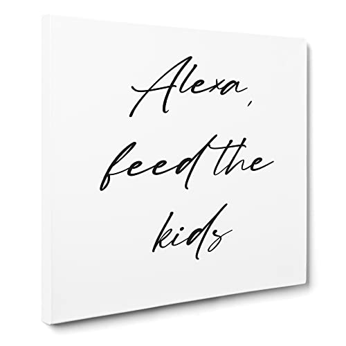Alexa Feed the Kids Modern Typography Quote Canvas Wall Art Print Ready to Hang, Framed Picture for Living Room Bedroom Home Office Décor, 14x14 Inch (35x35 cm)