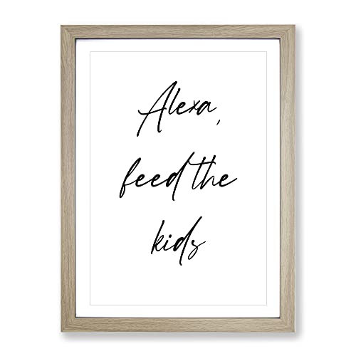 Big Box Art Alexa Feed The Kids Typography Framed Wall Art Picture Print Ready to Hang, Oak A2 (62 x 45 cm)