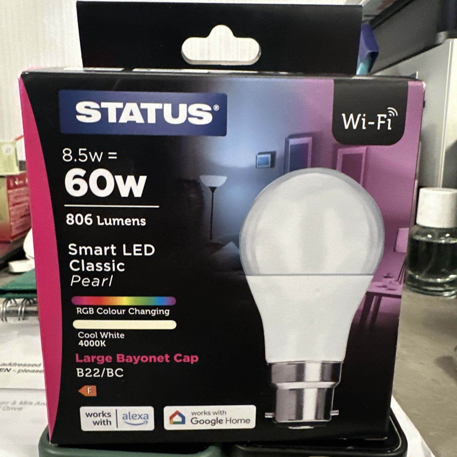 STATUS Smart LED Colour Changing Light Bulb - Alexa & Google Home - 8.5w=60w