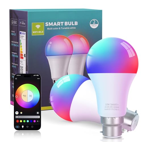 FRIDEKO HOME Smart Light Bulb - WiFi Bayonet Light Bulbs, LED Color Changing Light Bulb Work with Alexa and Google Assistant, 10W B22 RGBCCT Dimmable Lightbulbs, 800LM,2 Packs