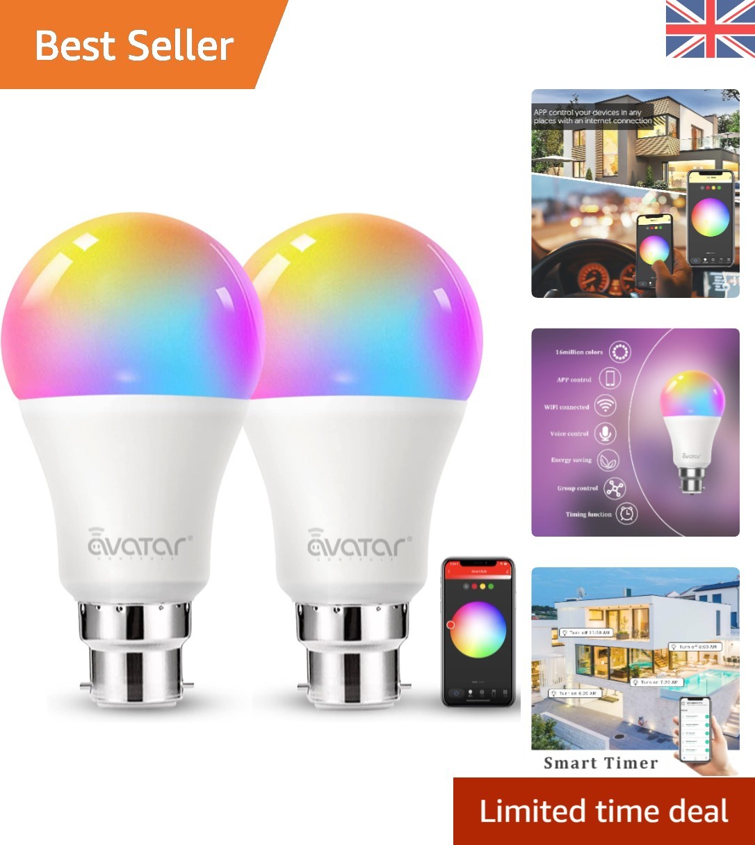 Avatar Controls Smart Bulb Alexa Light Bulbs B22 Bayonet, Colour Changing WiFi LED Lamp Bulbs 9W Set of 2 Bulbs