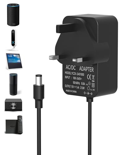 Binamao 21W Power Charger Adapter for Alexa Echo 1st Gen, Echo 2nd Gen, Echo Show 1st Gen, Echo Plus 1st Gen, Echo Look, Echo Link, Fire TV 2nd Gen, 15V/1.4A 1.5m Plug Power Cord Charger - Black