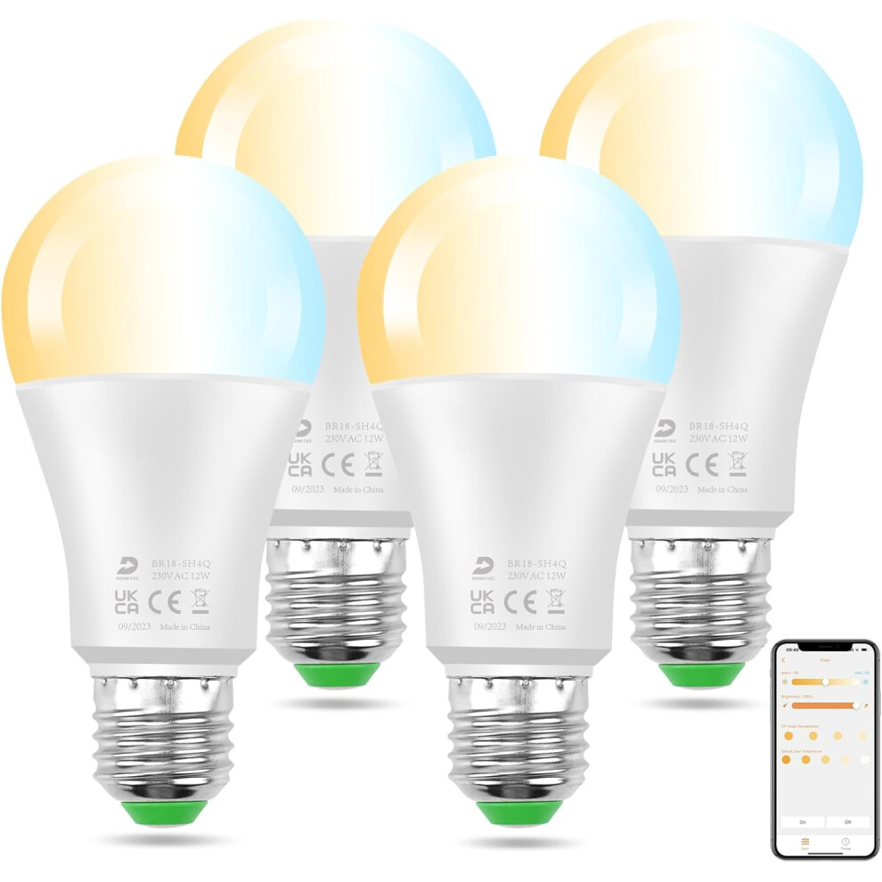 DUSKTEC Bluetooth Smart Bulb E27, Warm White to Daylight Dimmable Alexa Light Bulbs, 12W 1300 LM Smart Light Bulbs, 130W Equivalent Edison Screw Bulb
