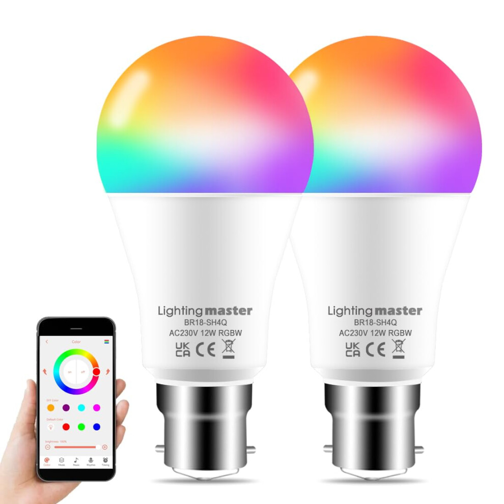 Lighting master Alexa Light Bulbs 12W 1280LM, Bluetooth Smart Bulb Colour Changing, 16 Million RGB Colours + Warm to Daylight White Dimmable, B22 Bayonet Led Bulbs by APP and Voice Control (2 Pack)