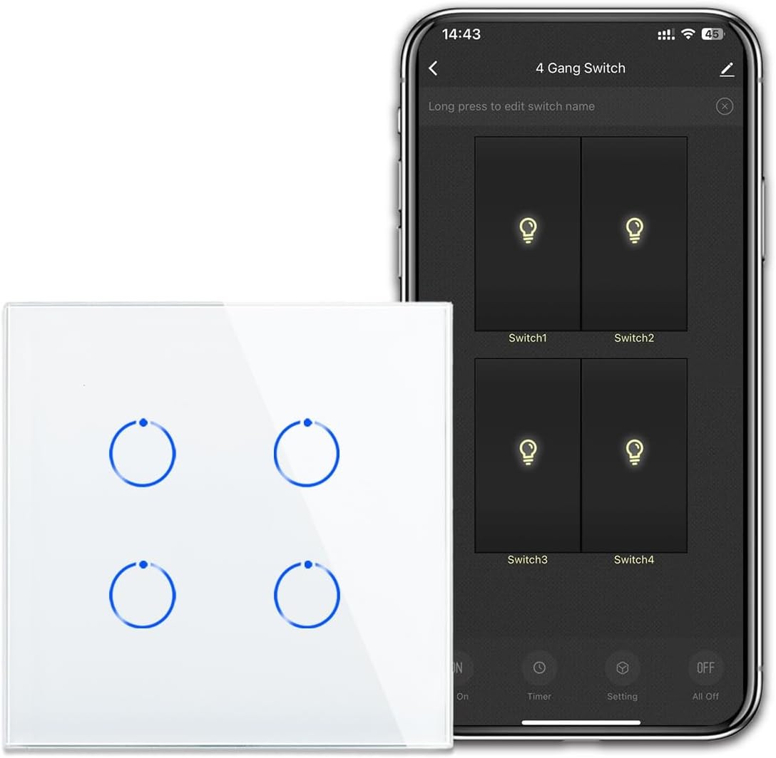 WiFi Smart Switch Light Switch, Works with Amazon Alexa/Google Home, APP Remote Control, Voice Control, DIY Mode, Timer Function, LAN Control, No Hub Required, 2 Way 16A(4 Pack)