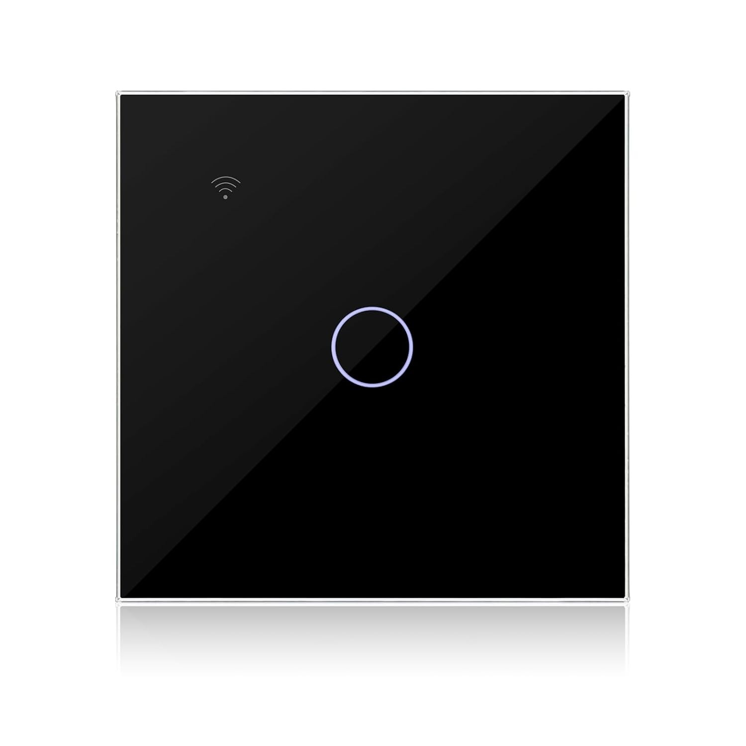 BSEED Smart WiFi 1 Gang 1 Way Alexa Switchable Switches Black, Glass Panel Wall Light Switch, Voice/App Control Sharing Wifi Switches(Neutral Wire Required)