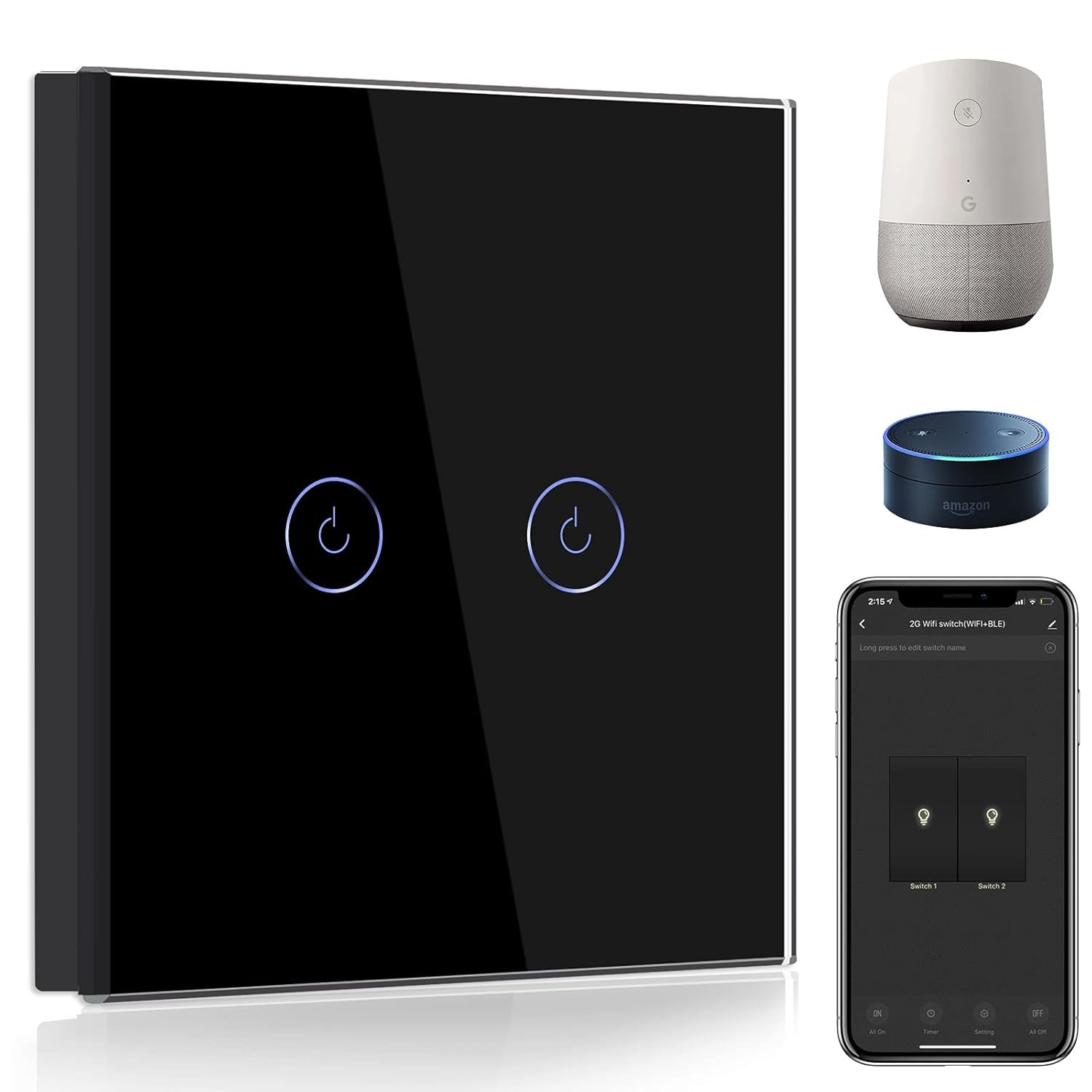 Smart WiFi Light Switch Maxcio Alexa Smart Wall Light Switch 2Gang 1Way Timer