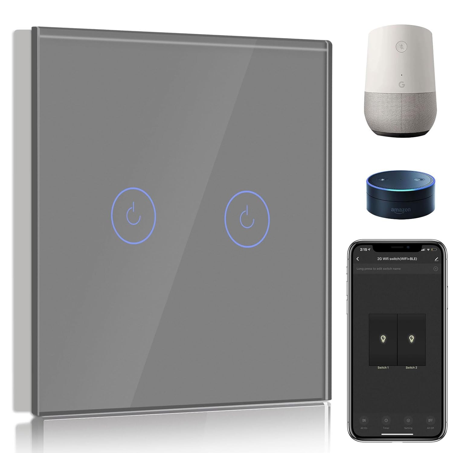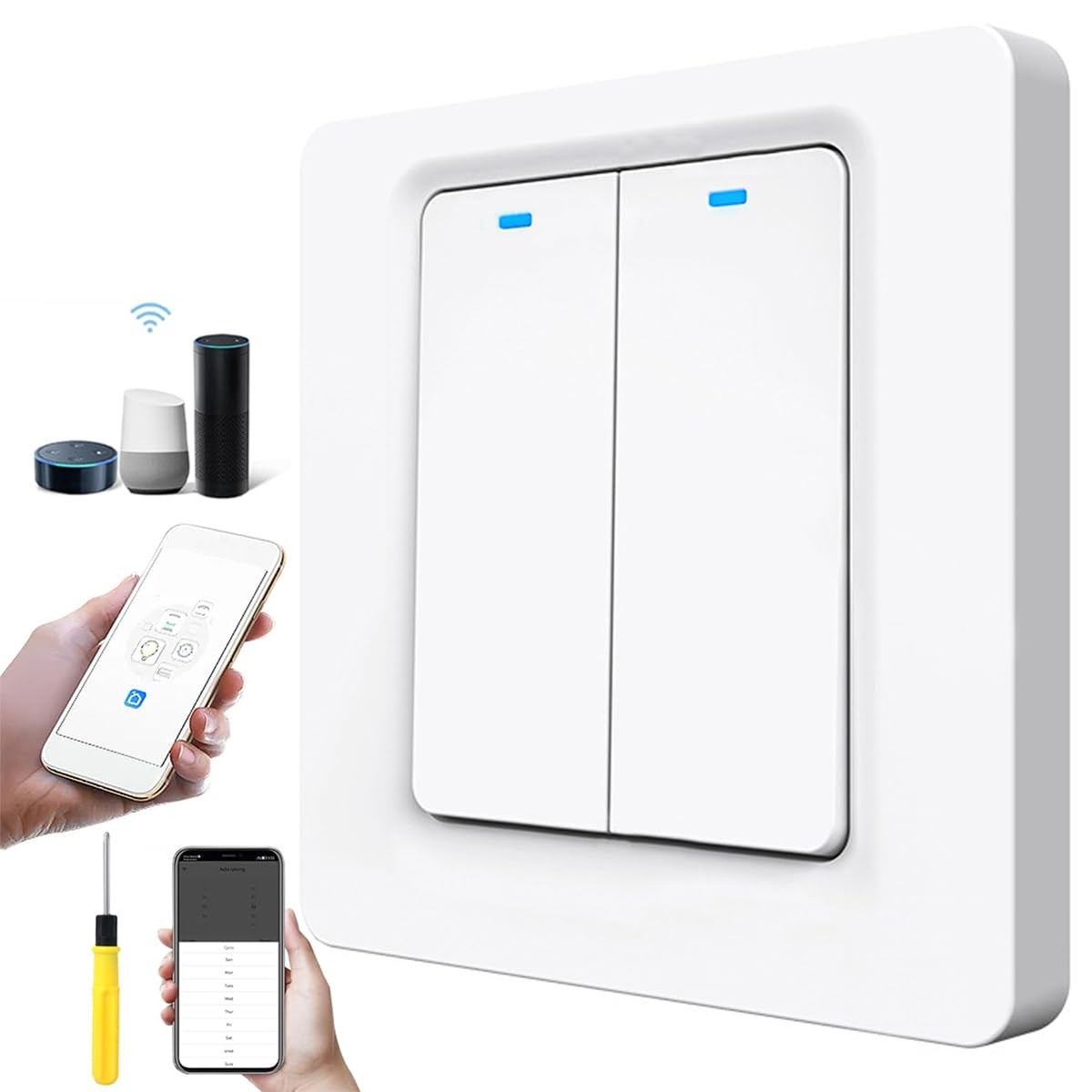 Smart Wall Light Switch Compatible for Alexa (Neutral Required) 2Gang 1Way WiFi