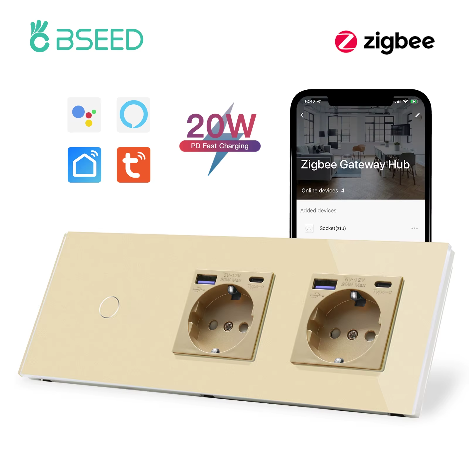 Zigbee Wall Switch 1/2/3Gang Smart Touch Light Switches Tuya APP Alexa Glass 20W