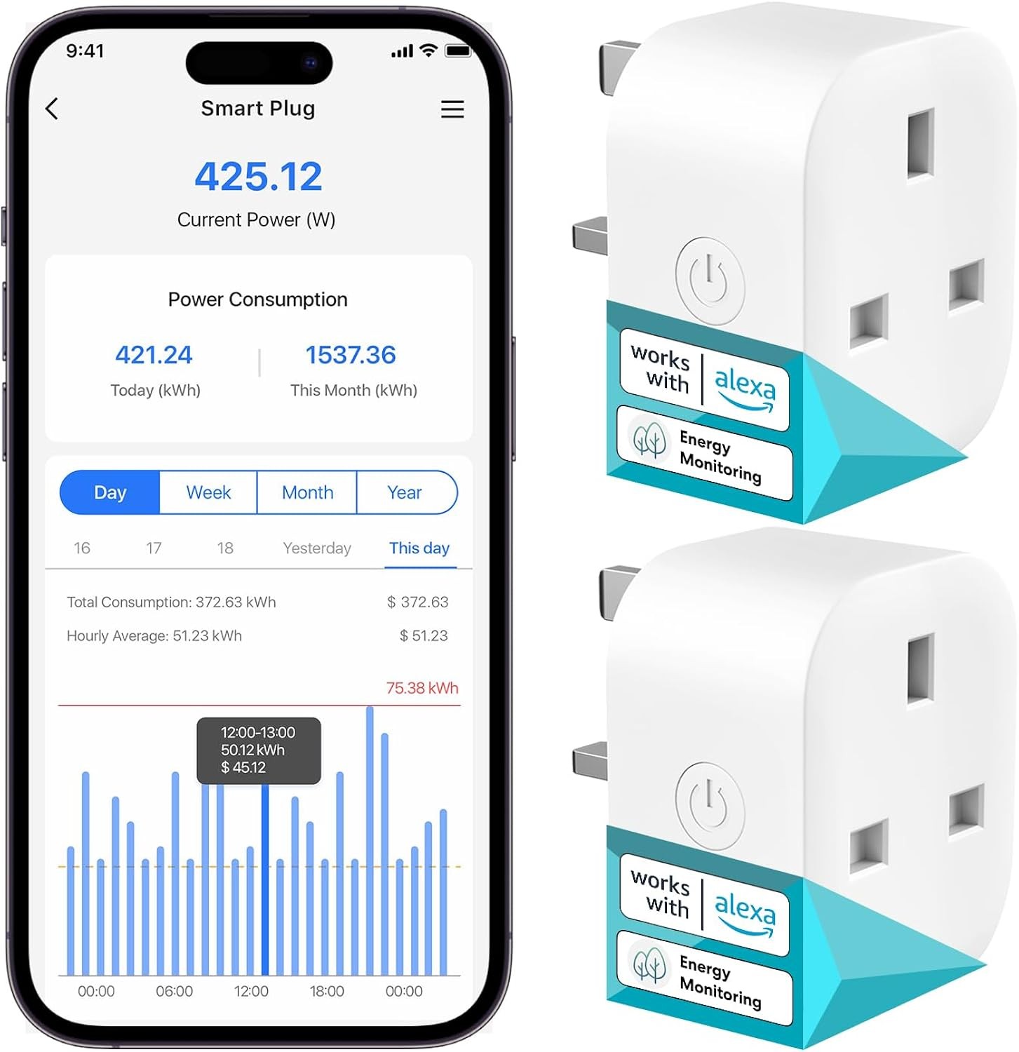 Smart Plug Wi-Fi Timer Socket with Energy Monitoring - Works with Alexa/Googl...
