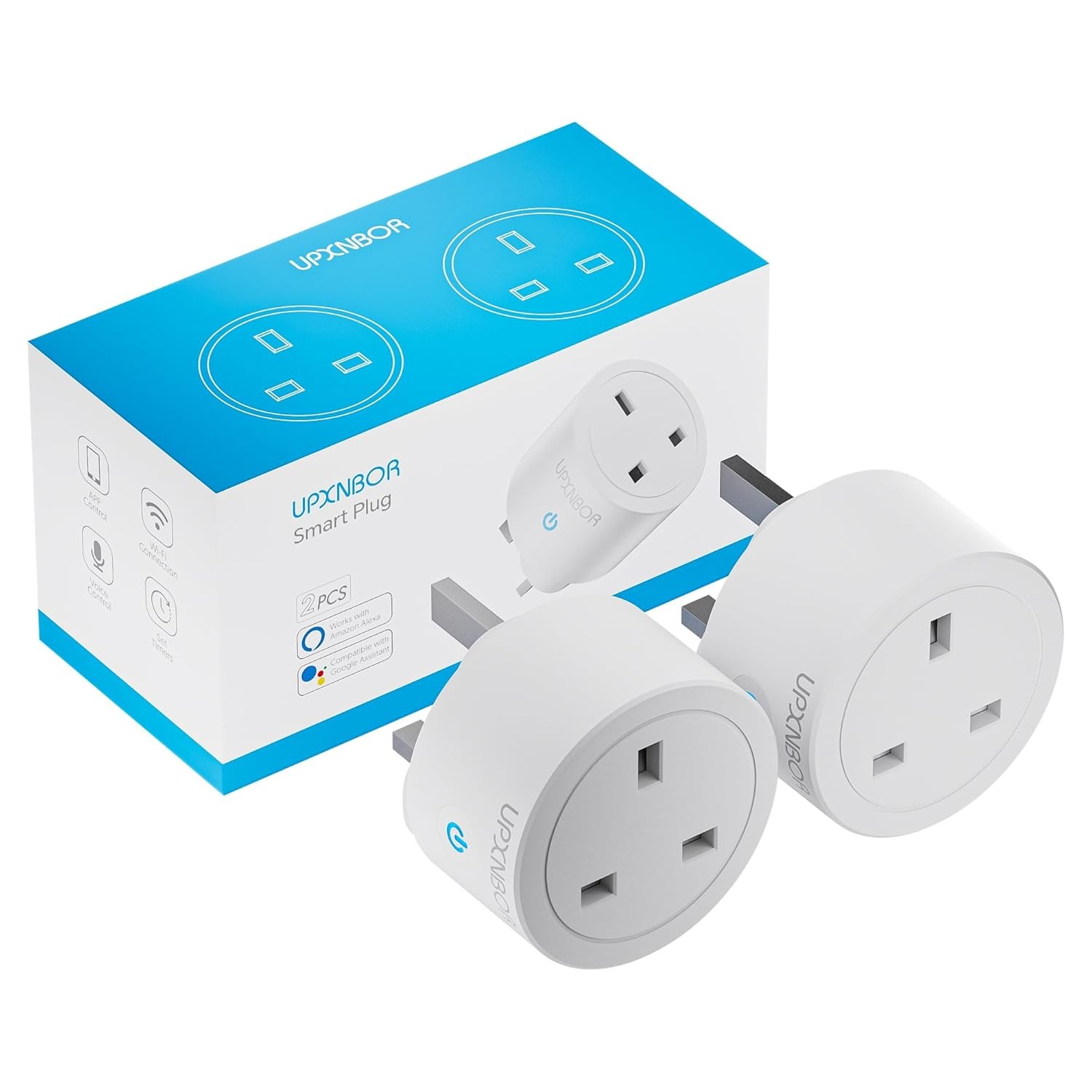 UPXNBOR Smart Plug Wi-Fi Outlet, Works with Alexa & Google Home, Wireless Smart Socket with Energy Monitoring, Timer & App Remote Control, Device Sharing, 2.4GHz Wi-Fi Only, 13A (2 Pack)