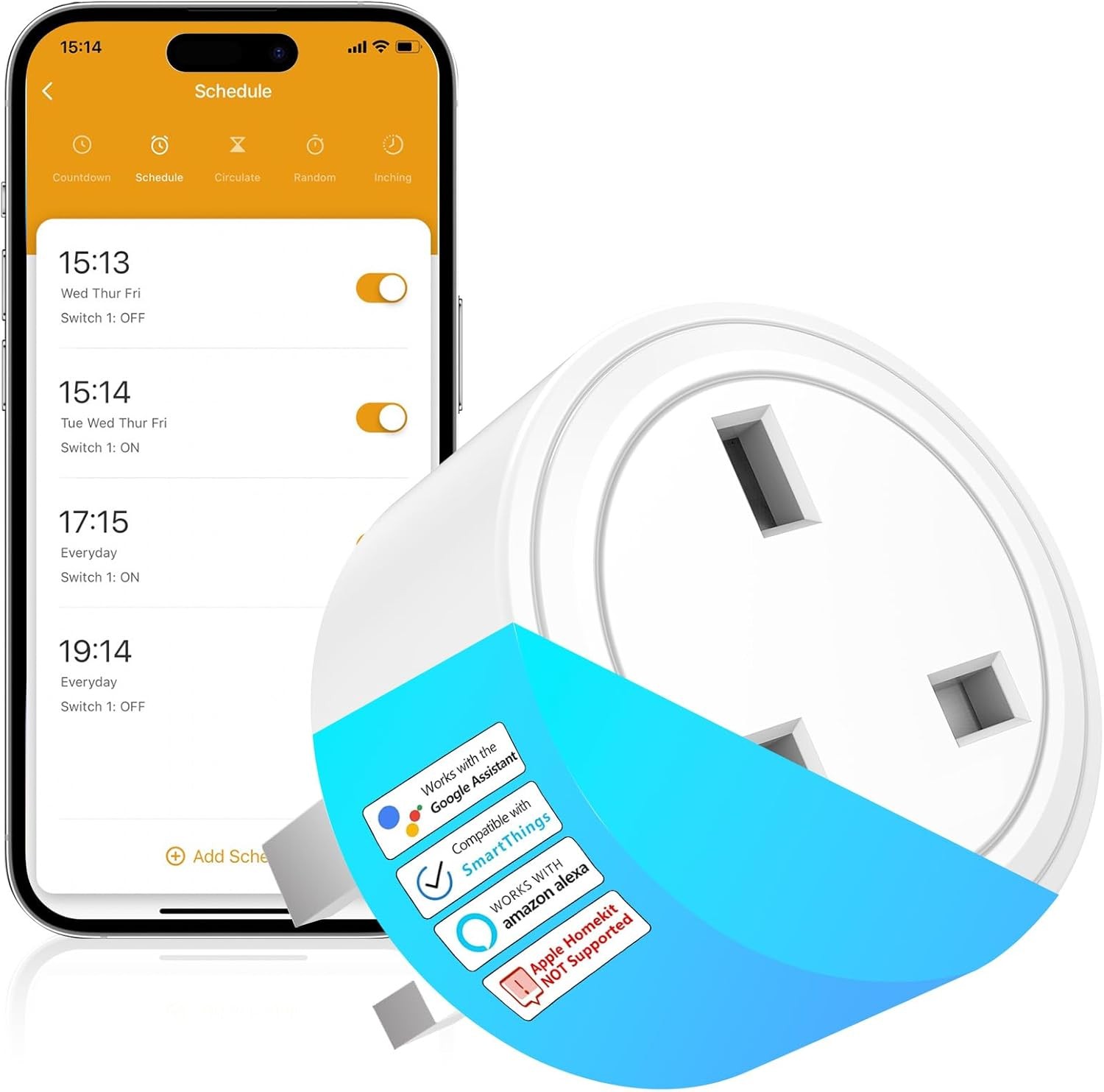 Smart Timer Plug Socket Outlet Wifi Wireless Compatible with Alexa, Google Home