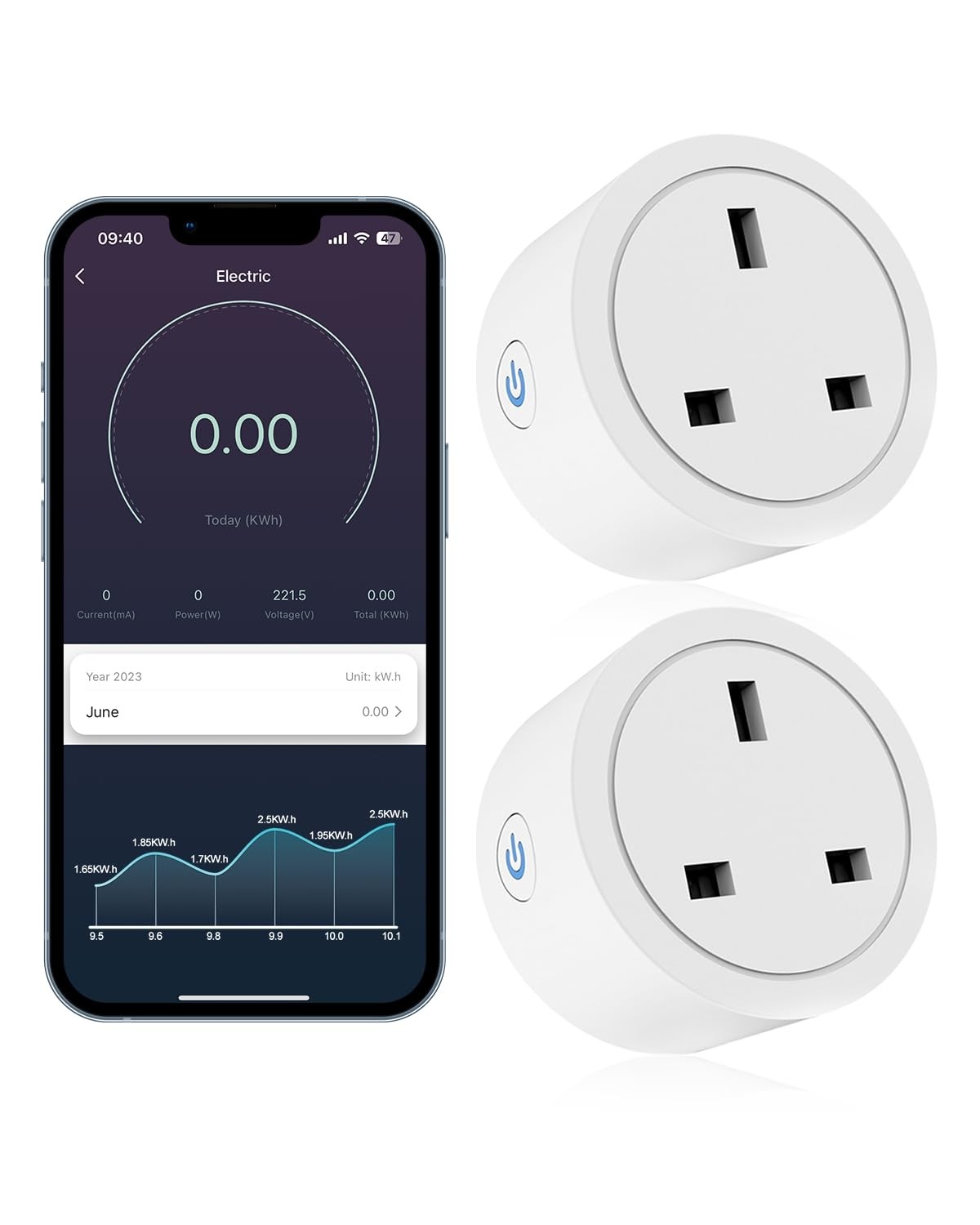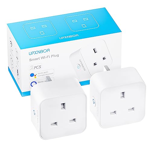 UPXNBOR Smart Plug Wi-Fi Outlet, Works with Alexa & Google Home, Wireless Smart Socket with Energy Monitoring, Timer & App Remote Control, Device Sharing, 2.4GHz Wi-Fi Only, 13A (2 Pack)