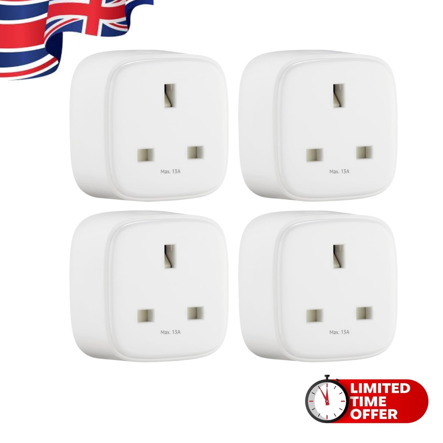 UPXNBOR Smart Plug Wi-Fi Outlet, Works with Alexa & Google Home, Wireless Smart Socket with Energy Monitoring, Timer & App Remote Control, Device Sharing, 2.4GHz Wi-Fi Only, 13A (4 Pack)