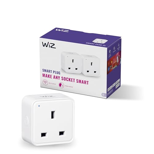 WiZ Wi-Fi Smart Plug, Type G, 230V, 50Hz, Easy Setup, Matter Certified, Smart Controls, Voice Commands, Works with Alexa, Google Home, and Apple Home, 2 Pack