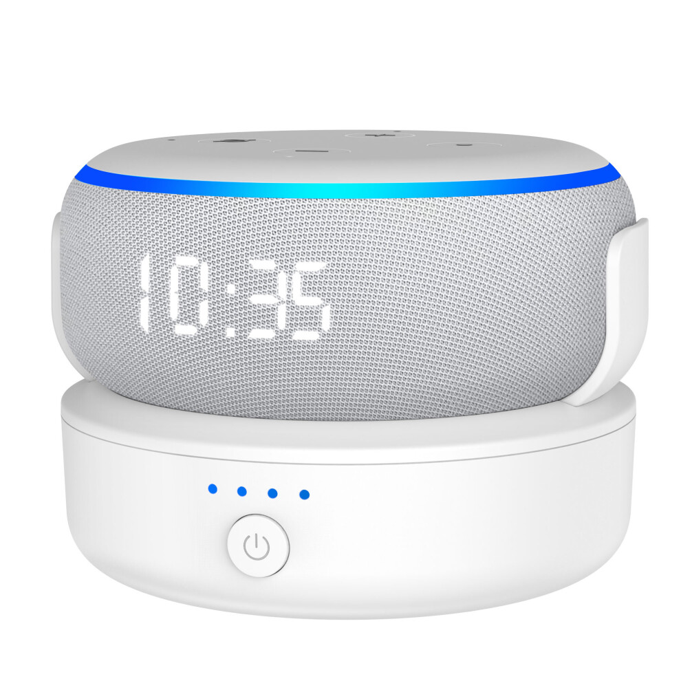 (5000mAh White) Battery Base for Alexa Echo Dot 3rd Generation, 10000mah Capacity, Compatible with Smart Speaker Stand, Charger