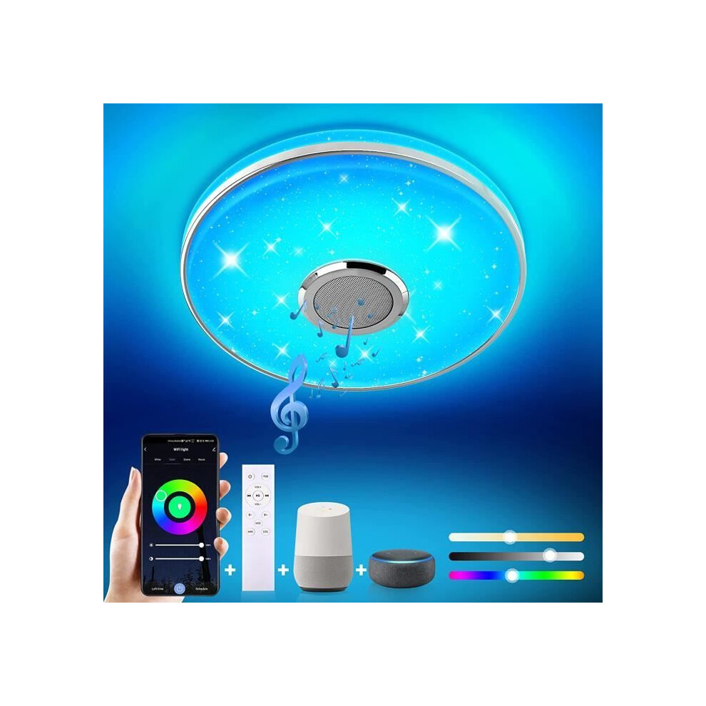 Led Ceiling Light with Bluetooth Speaker, Wifi RGB Ceiling Lighting Compatible with Alexa Google Home, Dimmable Chandelier A398