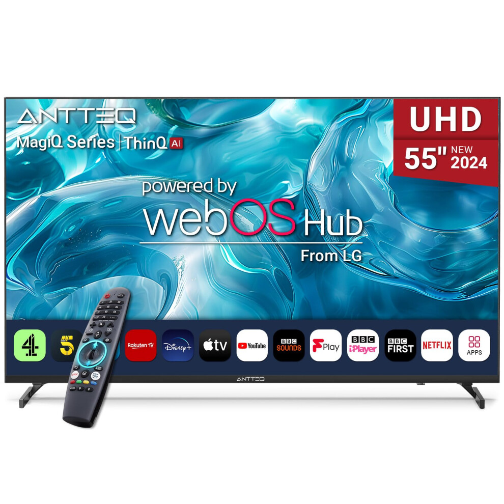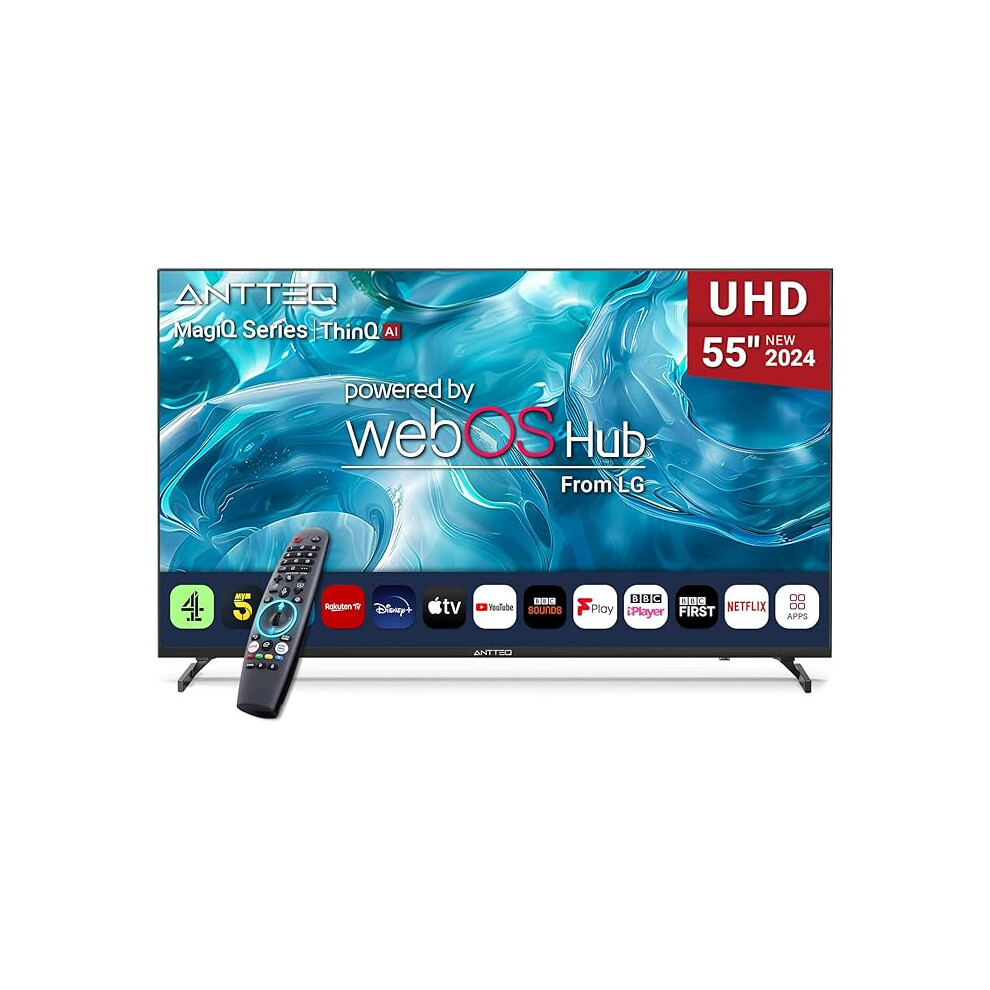 Antteq Smart TV 55 inch MagiQ 55" UHD 4K TV webOS, ThinQ AI MEMC Work with Alexa 2024 Black Television