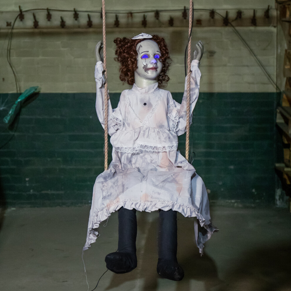 5.5ft Motion Activated Animated Swinging Decrepit Halloween Doll with LEDs