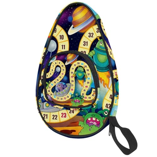 lcndlsoe Ping Pong Paddle Bag, Funny Game Board Monster Rocket Alien Planet Table Tennis Racket Cover Case