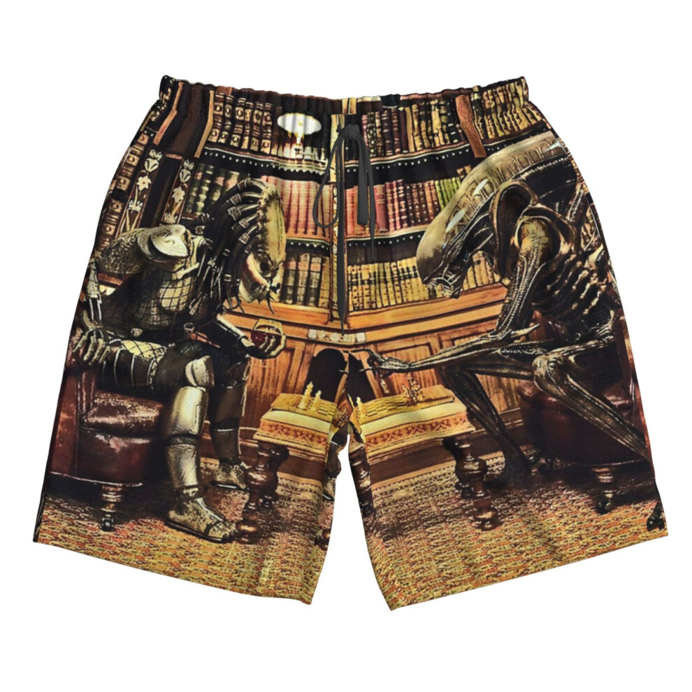 (Predator Versus Alien Game II_7540) Famgem Men's Beach Shorts Hawaiian Swim Trunks with Pockets Quick Dry Board Swimwear Bathing Graphic Printed Suit