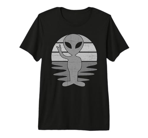 Retro Vintage Film Sci Fi Alien Peace Sign Premium T-Shirt