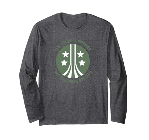 Aliens U.S. Colonial Marines We Endanger Species Long Sleeve T-Shirt, Adult Unisex, Dark Heather Grey, Medium