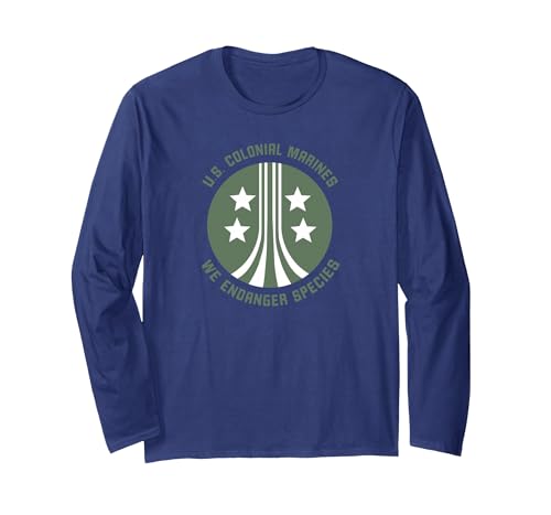 Aliens U.S. Colonial Marines We Endanger Species Long Sleeve T-Shirt, Adult Unisex, Navy Blue, Large