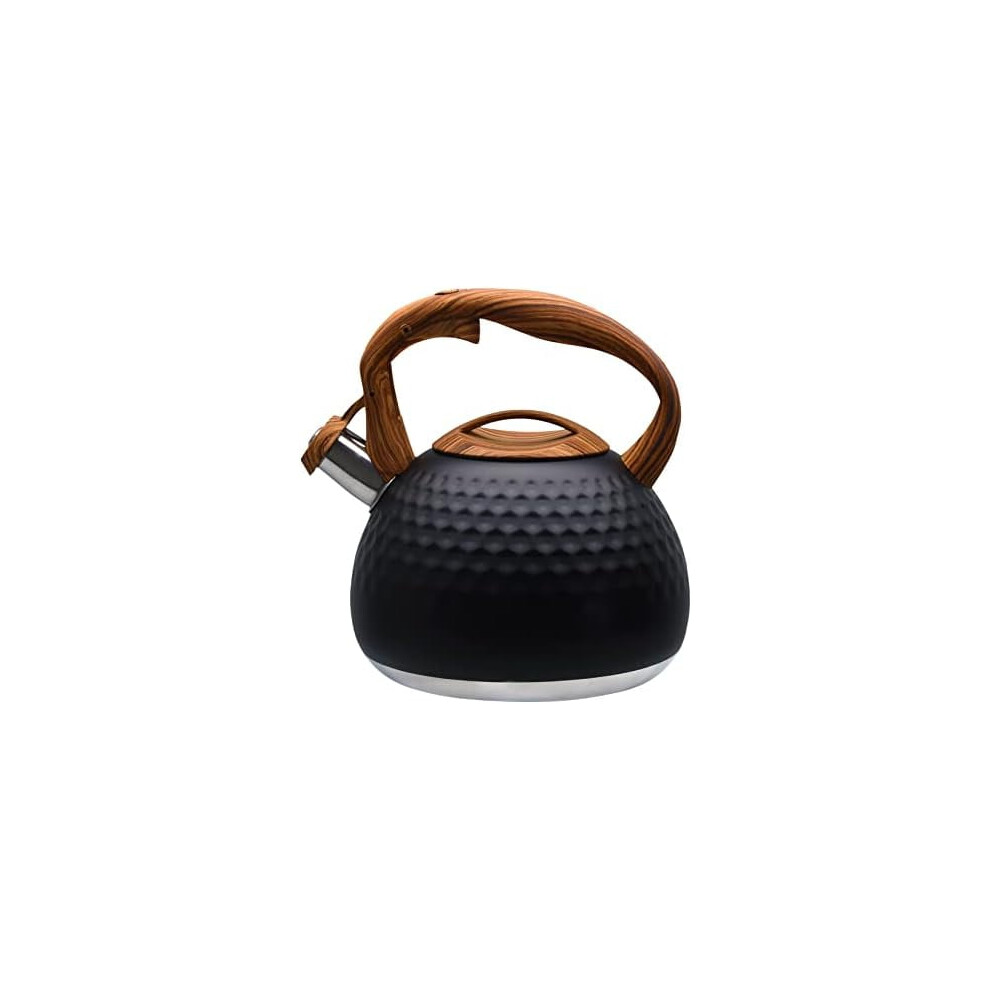 Stainless Steel Whistling Tea Kettle Set with Wood Handle, 1.3L for All Stovetops, Black 21x21x18cm