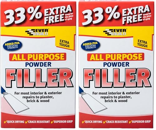 Everbuild All Purpose Powder Filler – Suitable for Interior and Exterior Use – Quick Drying – White – 600g (450g + 300g Free) (Pack of 2)