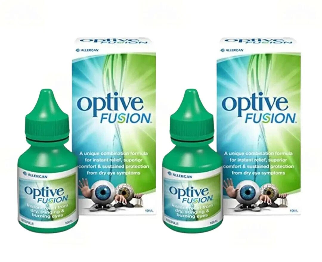 2x Boxes of OPTIVE FUSION 10ml Lubricant Eye Drops - FREE SHIPPING