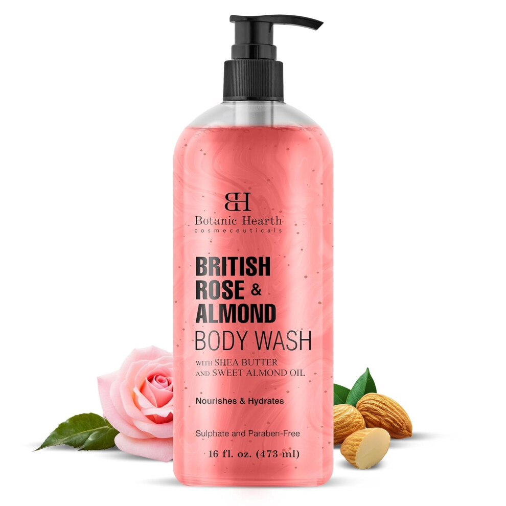 Botanic Hearth British Rose & Almond Body Wash with Shea Butter | Moisturizing Body Wash Shower Gel for Softer Smoother Skin | Sulfate & Paraben Free