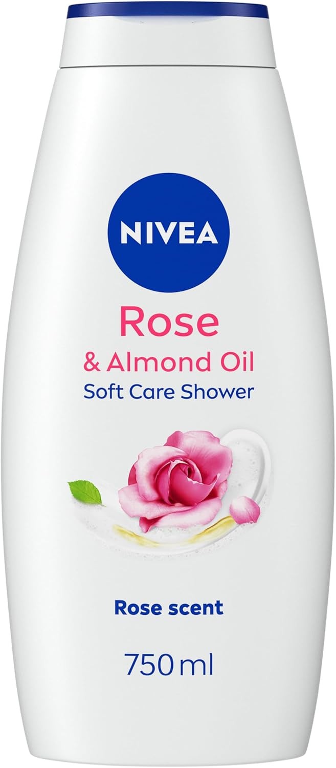 NIVEA Rose & Almond Oil Shower Cream (750ml), Moisturising Shower Gel with Almo
