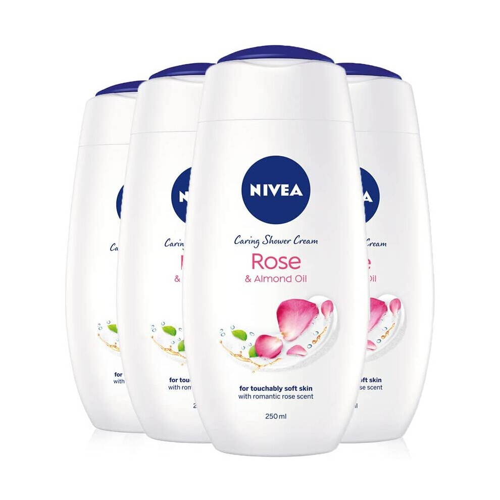 NIVEA Indulgent Moisture Rose Shower Cream Pack of 4 (4 x 250ml), Moisturising Shower Gel with Almond Milk, Luxurious Body Wash for Women, Body Wash