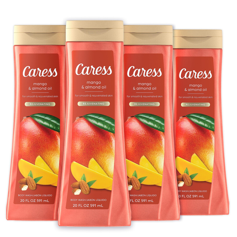 Caress Body Wash for Women Mango & Almond Oil Refreshing Shower Gel for Smooth Rejuvenated Skin 20 fl oz 4 Pack