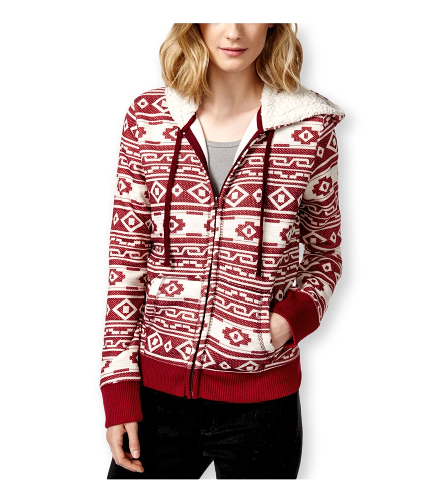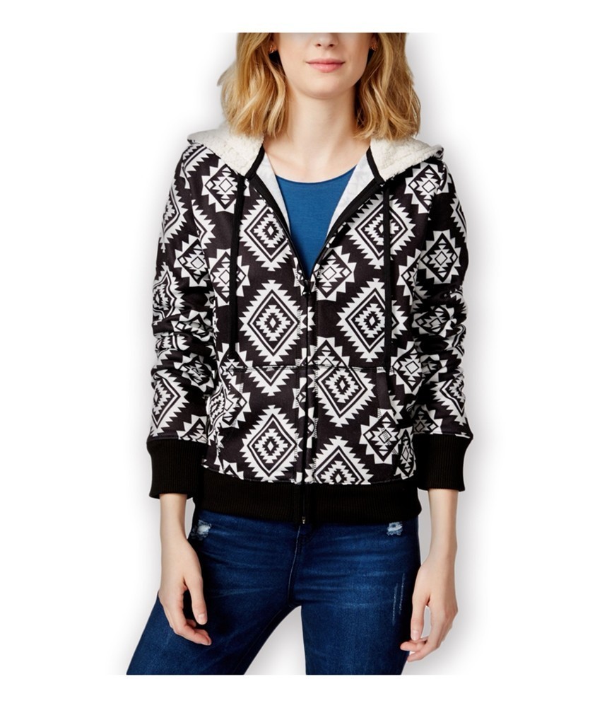 Almost Famous Womens Faux-Shera-Trim Hoodie Sweatshirt