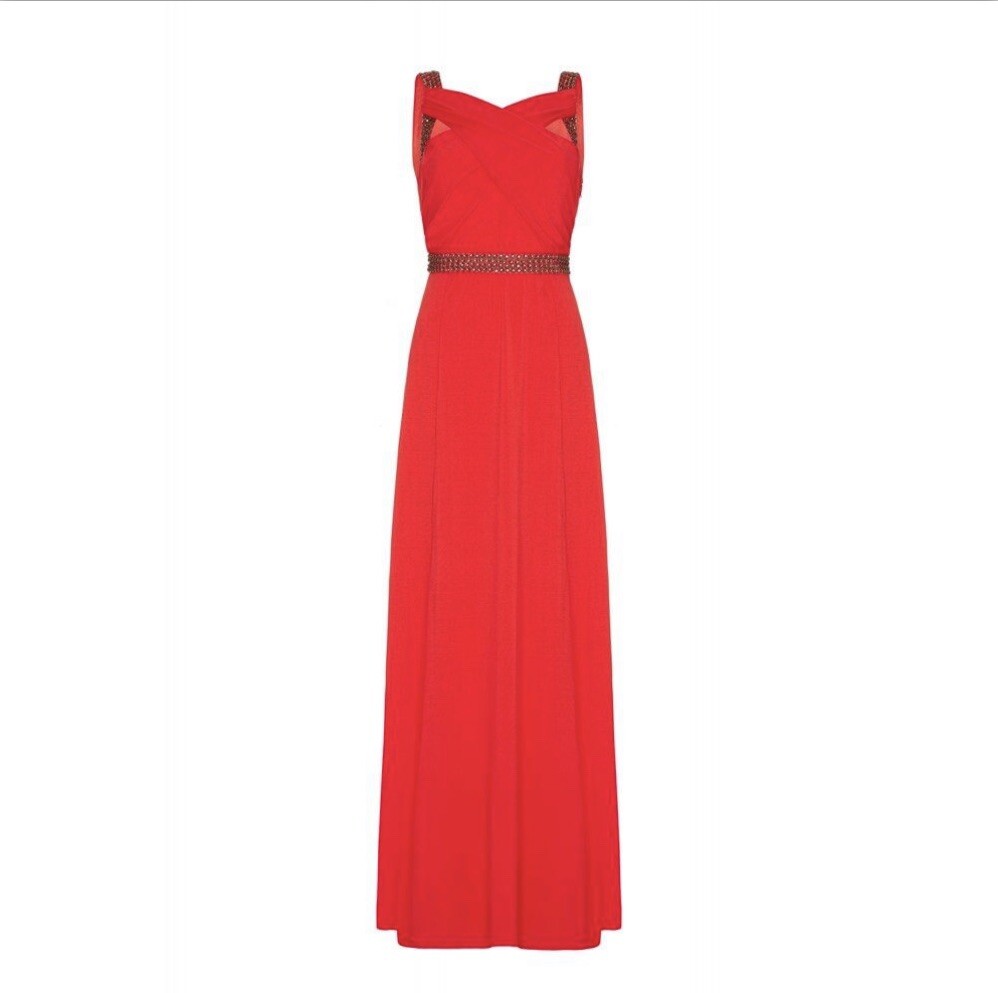 Almost Famous Womens Dress Maxi Gown Designer Embellished Coral Red 8uk Womens