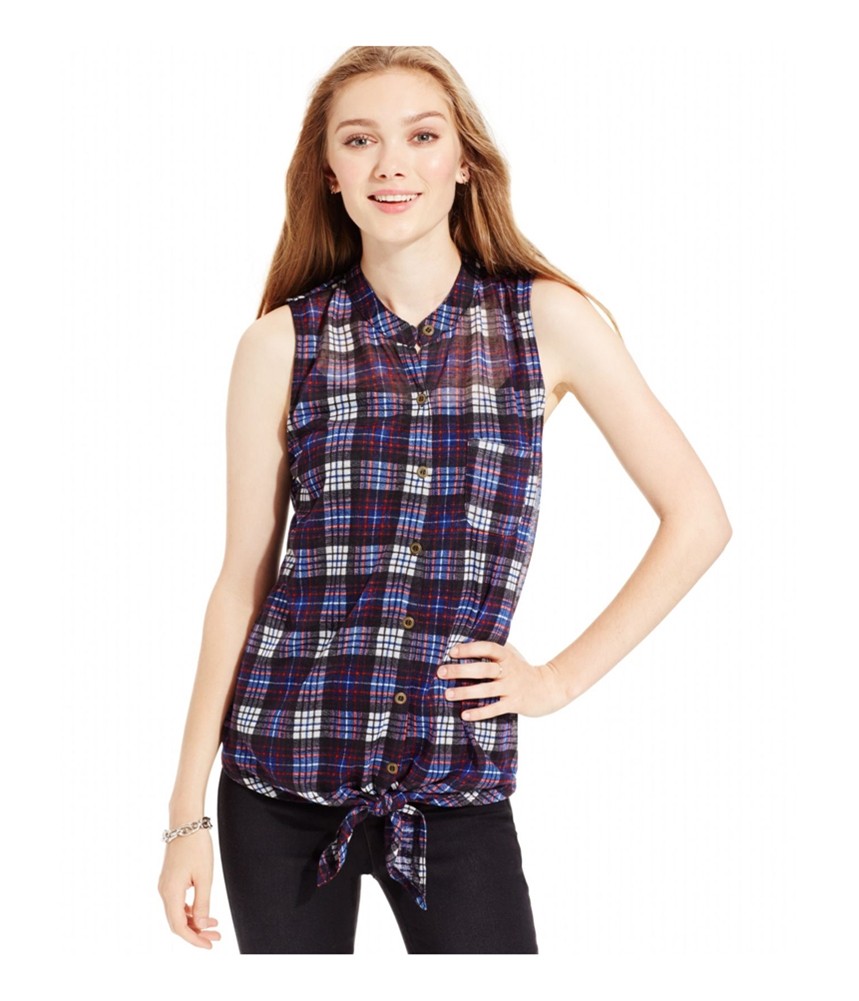 Almost Famous Womens Tie Hem Flannel Button Up Shirt, Blue, Juniors, X-Small