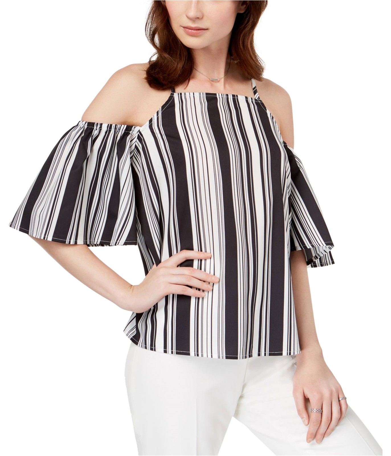 Almost Famous Womens Striped Cold Shoulder Blouse, Black, X-Small