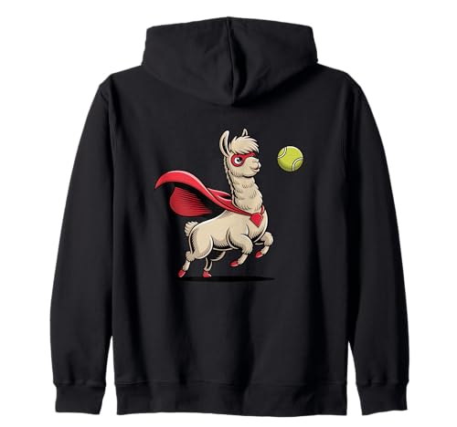 Alpaca Superhero With Red Cape Chasing Tennis Ball Zip Hoodie