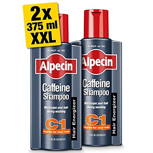 Alpecin Caffeine Shampoo C1 2x 375ml | For Stronger and Thicker Hair | Natural Hair Growth Shampoo for Men | Made in Germany