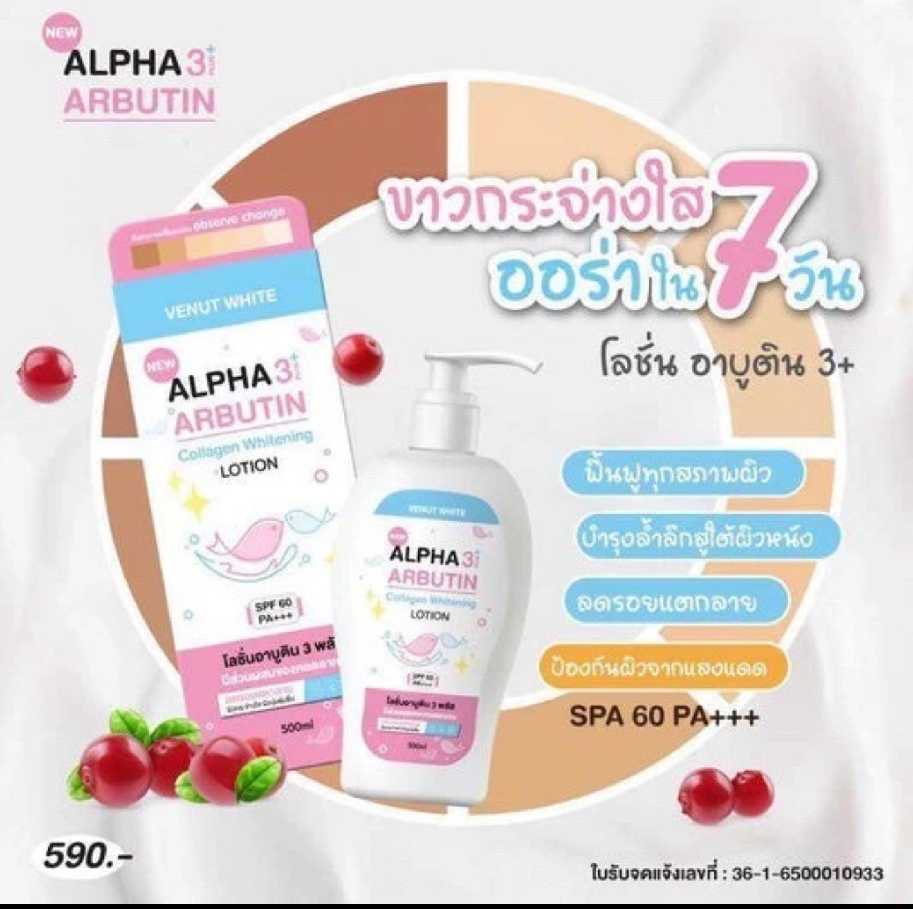 Alpha Arbutin Collagen Whitening Body Lotion SPF60 PA ++Venut White 500ml EFFECT