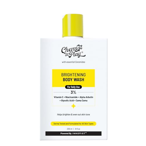 Chemist at Play Brightening Body Wash | Glowing Skin Vitamin C Bodywash | Helps to Reduce Fades Dark Spots, Evens out Skin Tone | Alpha Arbutin | 30X Vitamin C with Camu Camu | For Women & Men | 236ml