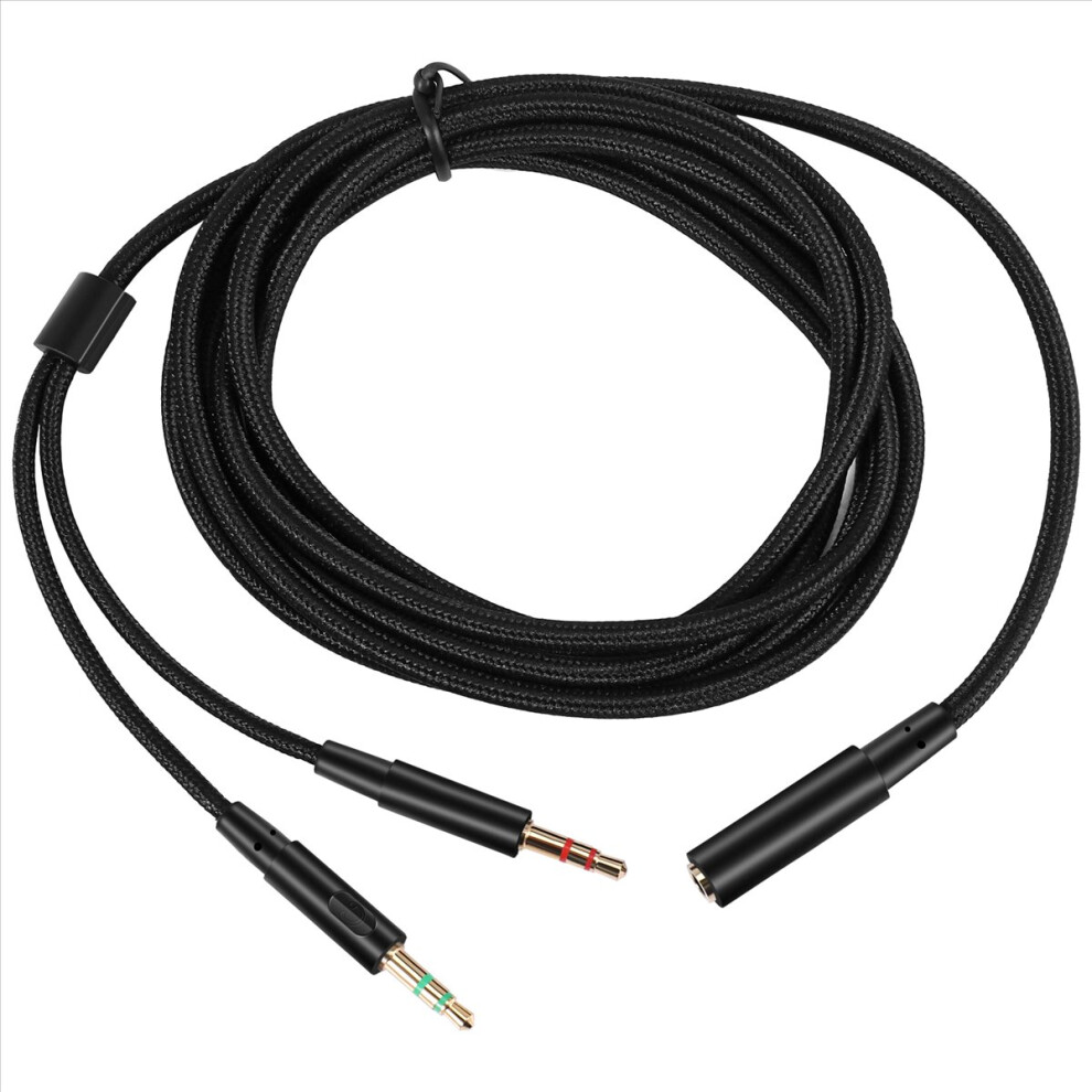 3.5mm Universal 2In1 Gaming Headset Audio Extension Cable For Cloud II/Alpha/Flight/Core Headphones