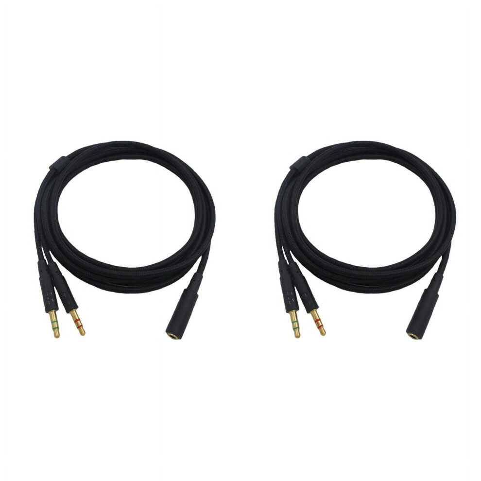 2 Pcs 3.5mm Universal 2 in 1 Gaming Headset Audio- Extend Cable for Cloud II/Alpha-/Cloud Flight/Core Headphone