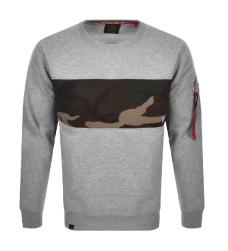 ALPHA INDUSTRIES Mens Grey Camo Bar Crew Neck Sweater Jumper Small BNWT